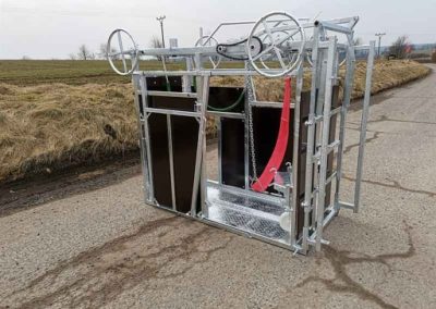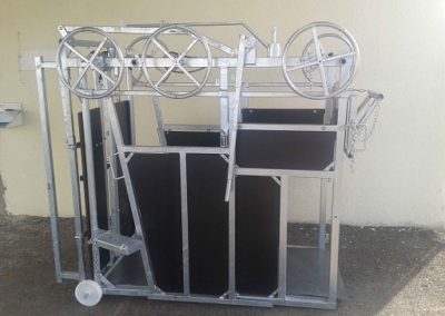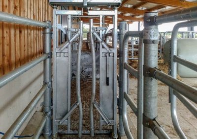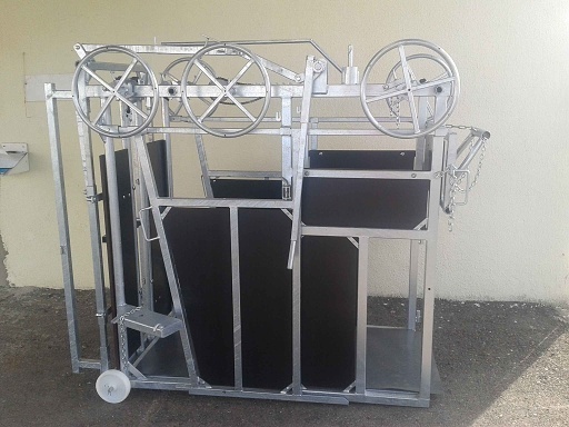 Fixační zařízení slouží ke bezpečnému zachycení zvířete pro následné úkony jako veterinární vyšetření, péče o paznehty atd. Díly se dají propojovat s naháněcí uličkou, či panely Texas.